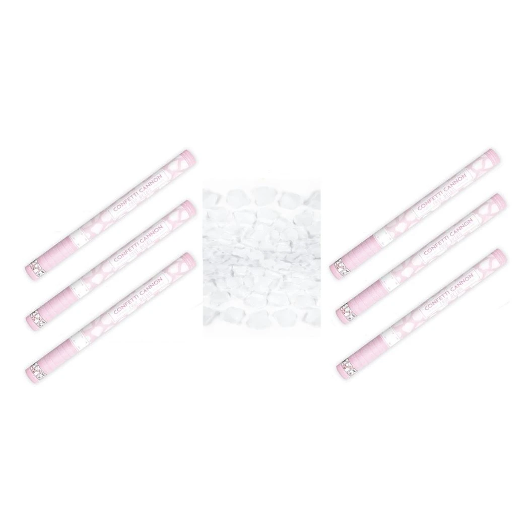 Sada 6 ks svatebních konfet o délce 60 cm s bílými okvětními lístky.