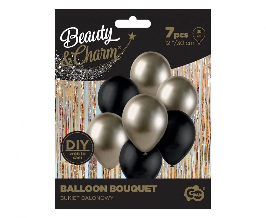 Balónky jsou navržené tak, aby ladily s různými typy oslav – od narozenin přes výročí, firemní večírky až po elegantní domácí party. Chromový efekt v barvě prosecca dodává lesk a pocit luxusu, černá barva vše vyvažuje a drží dekoraci v čisté, dospělé linii. Výsledek působí upraveně, promyšleně a velmi fotogenicky.