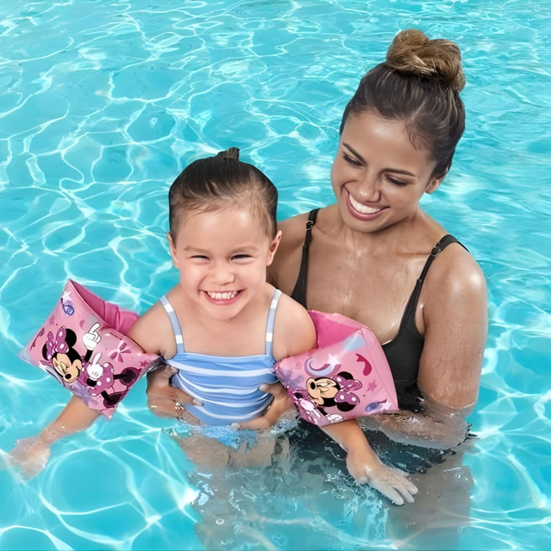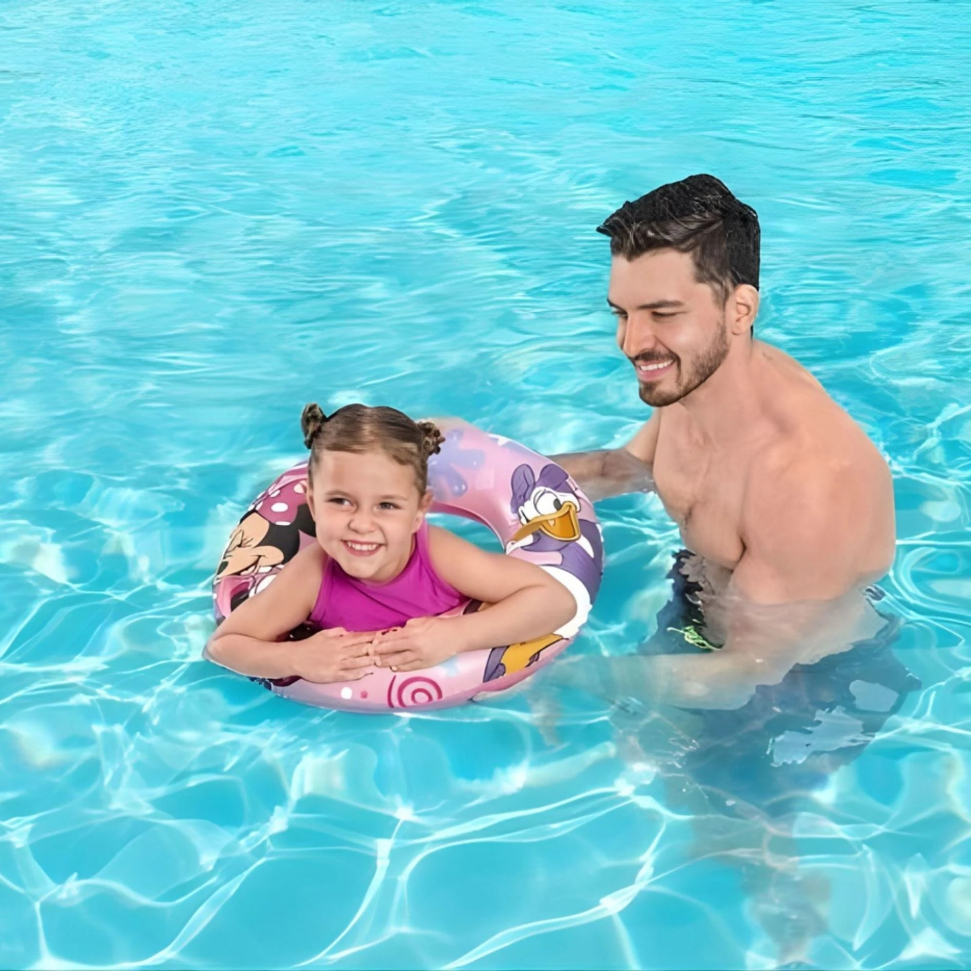 Sada obsahuje nafukovací plavecký kruh a rukávky, které pomáhají dětem cítit se ve vodě jistěji a zároveň si užít spoustu zábavy při koupání.