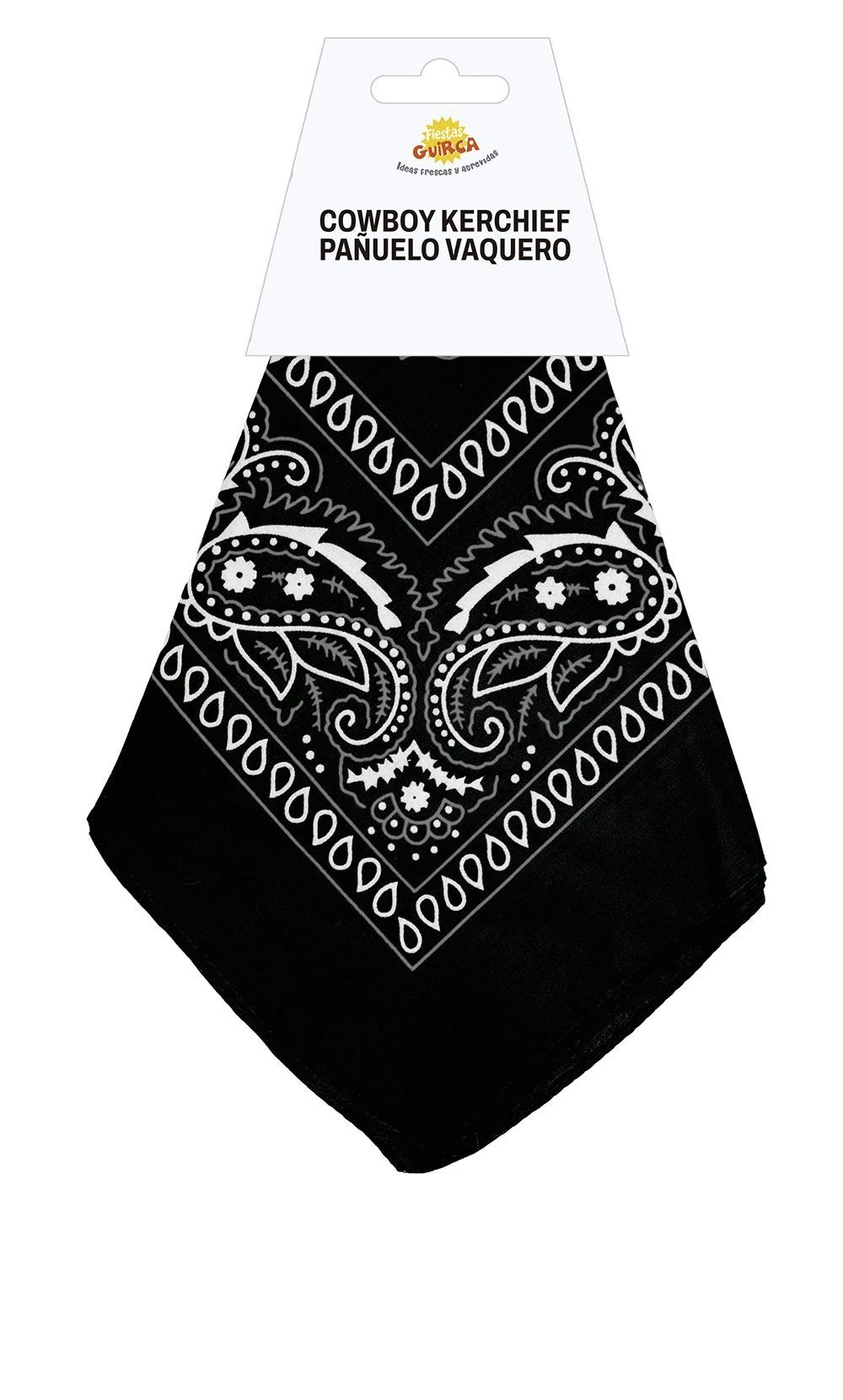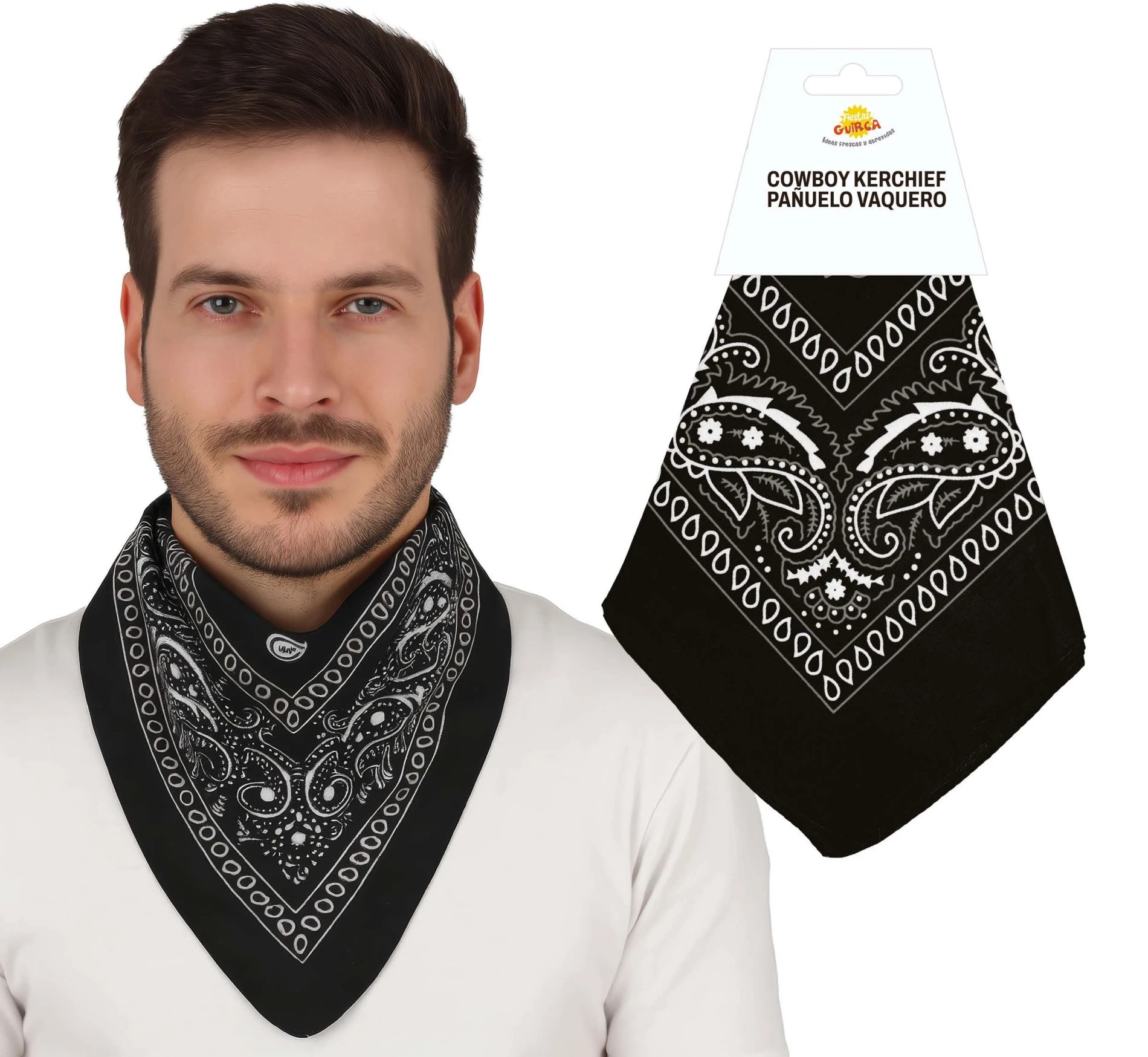 Stylový černý šátek ve westernovém stylu, ideální jako doplněk pro tematické akce, karnevaly, westernové párty, ale i pro každodenní nošení. Univerzální velikost a klasický design z něj dělají nadčasový kousek, který dodá vašemu outfitu šmrnc pravého kovboje či kovbojky.