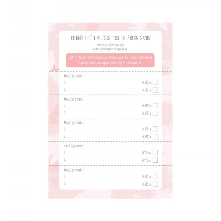 Vše máte připravené. Stačí otevřít krabici, zapojit tým nevěsty – a zábava může začít. Přirozeně, nenuceně a s dávkou humoru, která k rozlučce prostě patří.