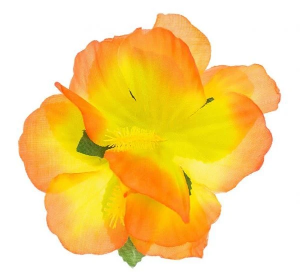 Havajská spona do vlasů – oranžový květ ibišku. Ozdoba na havajskou párty, která nesmí chybět žádné ženě ve vlasech. Kromě toho lze kvítek použít také jako tématickou dekoraci na vašem večírku.