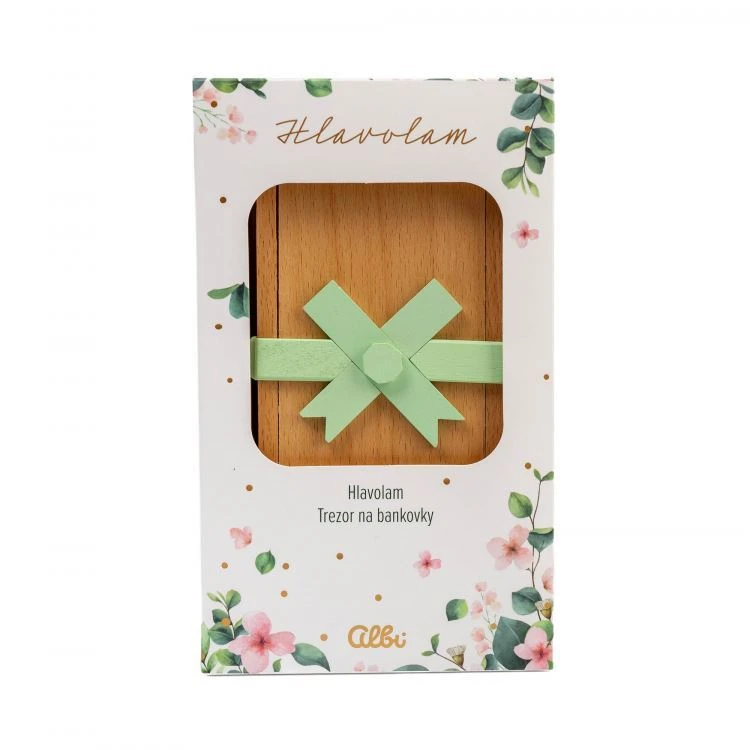 Tento dřevěný hlavolam o rozměrech 21 × 10 × 3 cm slouží jako netradiční obal na svatební dar. Stačí do něj vložit papírovou bankovku a uzavřít. Novomanželé se k ní ale hned tak nedostanou – nejdříve musí přijít na to, jak trezor otevřít. To z něj dělá nejen vtipný a originální dárek, ale i skvělý začátek svatební zábavy.