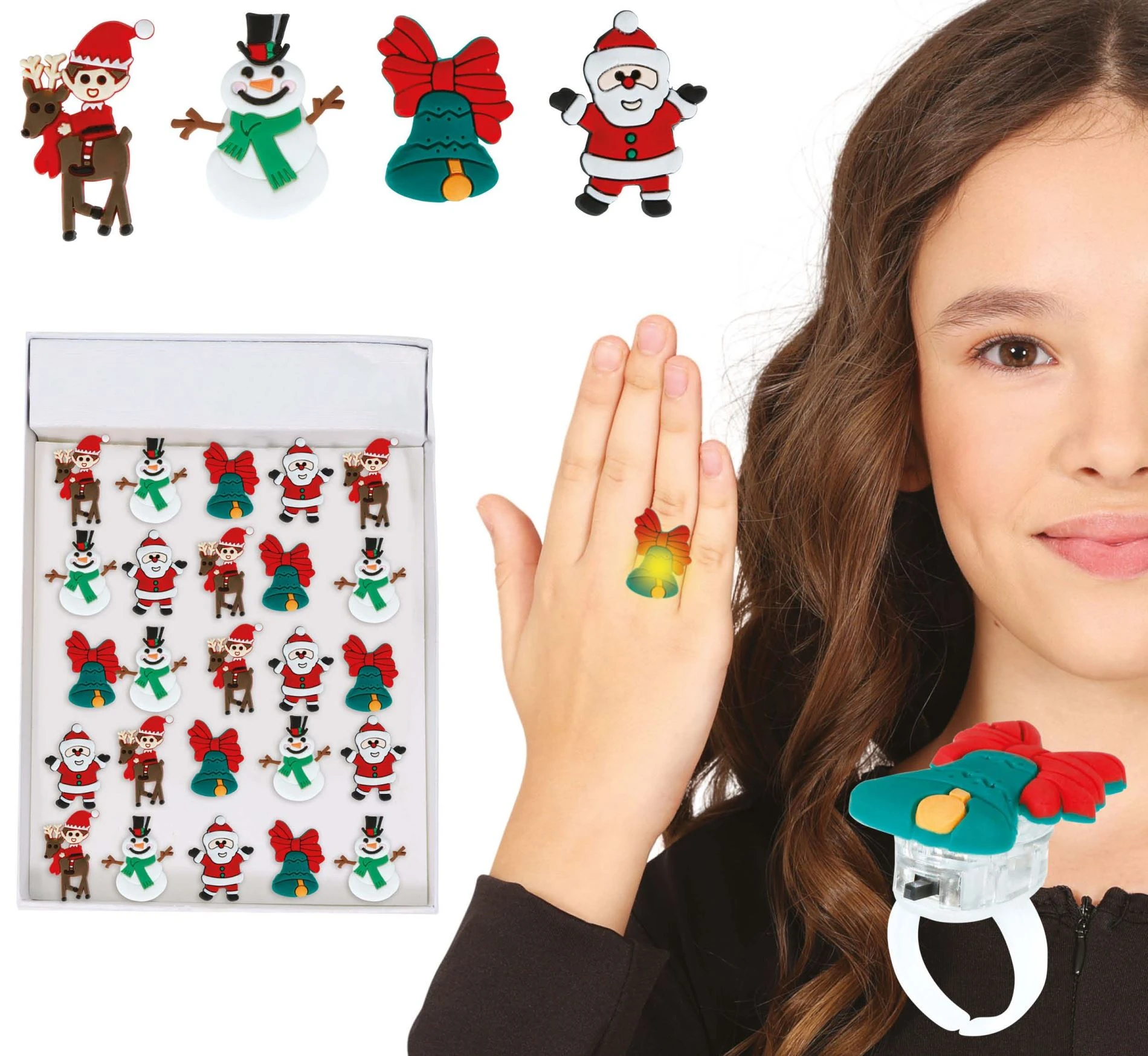 Svíticí LED prsten - prstýnek - mix - Vánoce - 3,5 cm