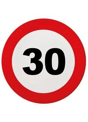 Originální a vtipné talíře v designu dopravní značky jsou ideální k prostření slavnostního stolu na oslavu 30. narozenin.