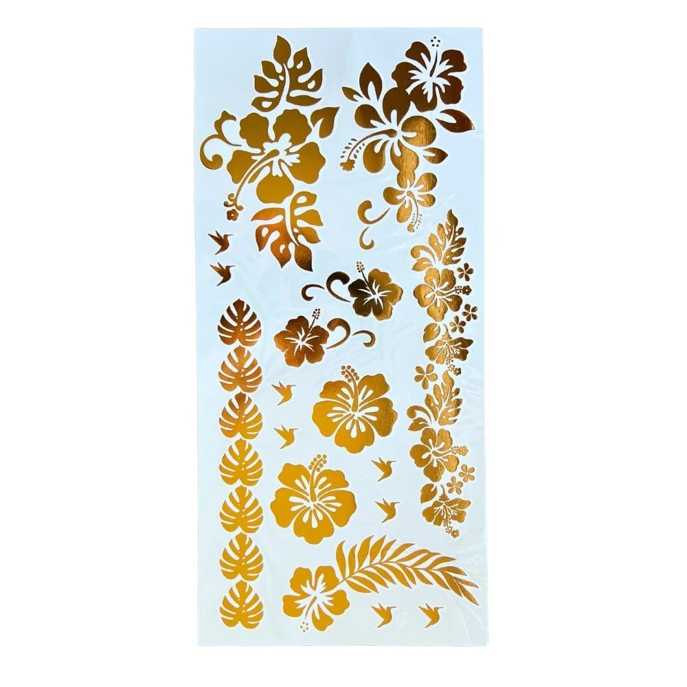 Všechna tetování v sadě mají zlatou barvu a budou originálním doplňkem vašeho festivalového outfitu nebo párty kostýmu.