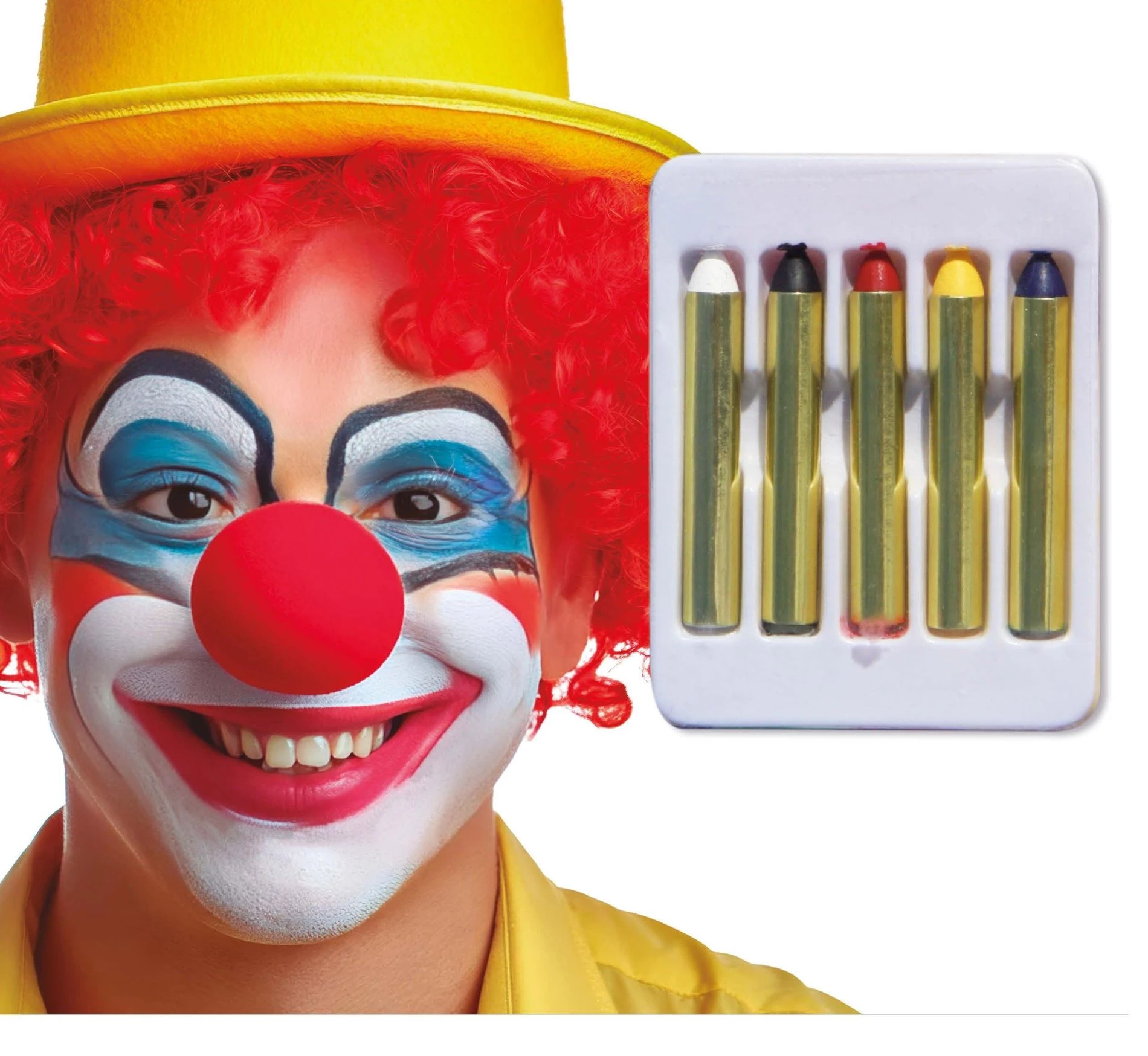 Barevné tužky klaun / šašek (5 ks) jsou ideálním pomocníkem pro všechny, kteří chtějí rychle, jednoduše a bez stresu vytvořit veselý obličej plný barev a emocí.